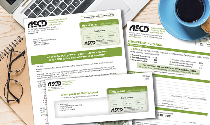 Association for Supervision Curriculum Development Acquisition Membership Card Package #10 Pistol Window Envelope Membership Letter Membership Card Membership Application Business Reply Envelope